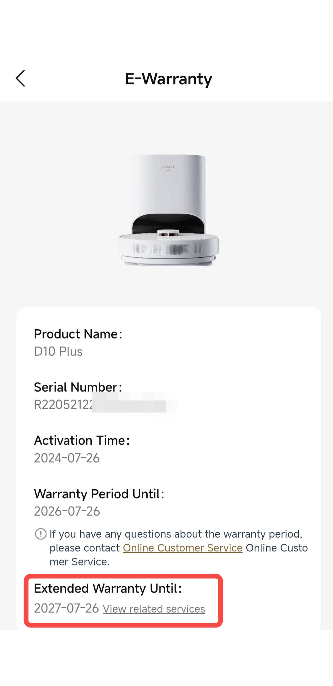 For inquiries or claims regarding warranty extensions, please contact us via email: support.na@dreame.tech