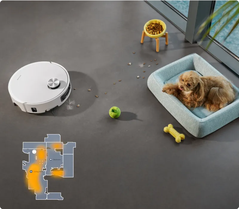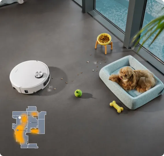 Accurately detects obstacles, identifies 240+ objects, and sees dirt in poorly-lit areas for a safer and thorough clean, thanks to its 3D structured light, LED light, and Al action camera.