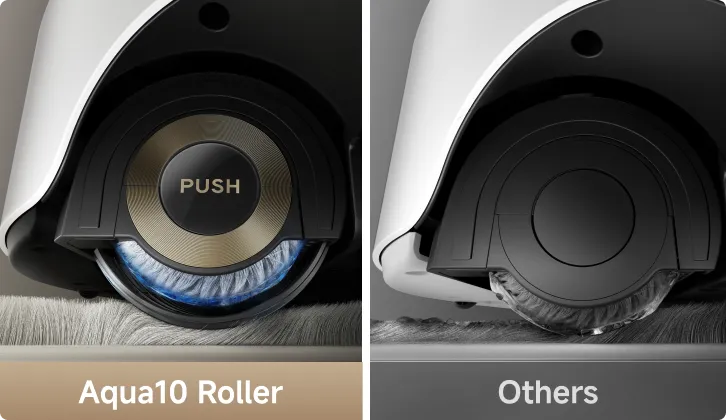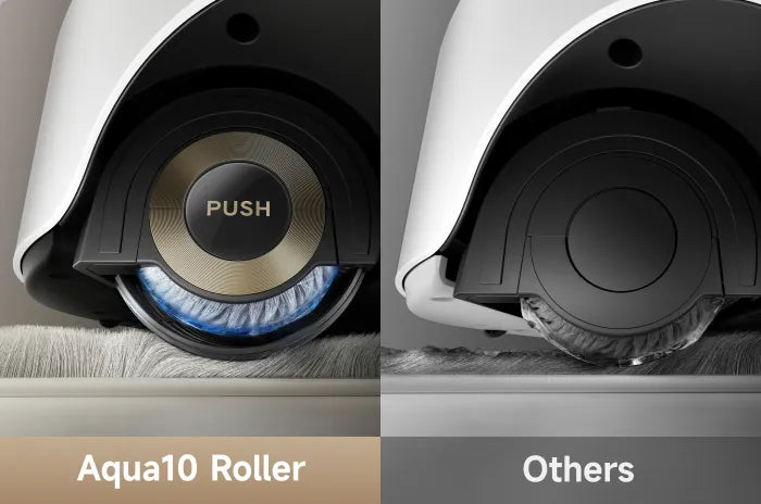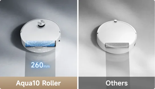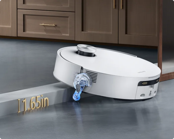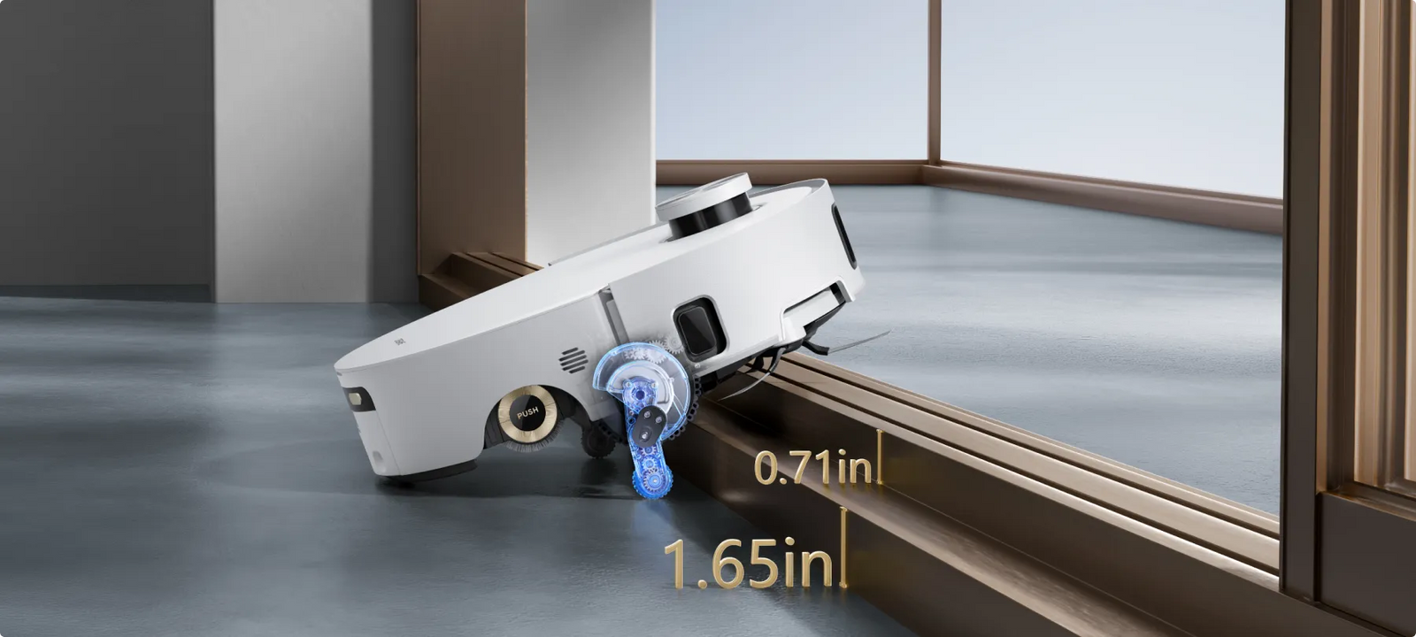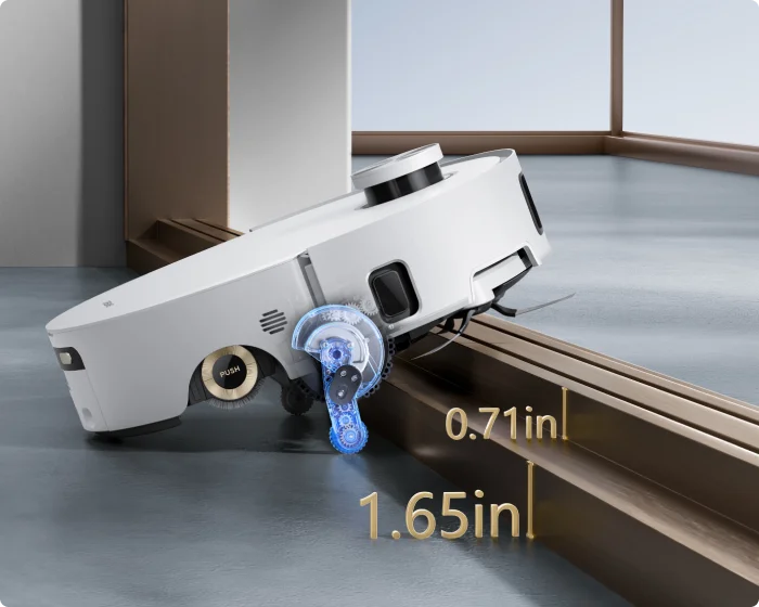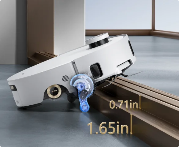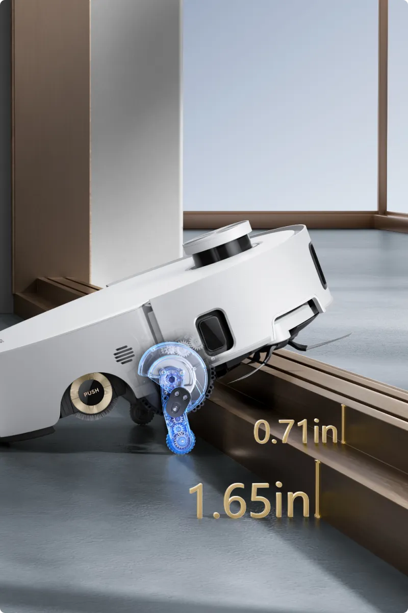 Aqua10 Roller's ProLeap™ system allows the robot vacuum to effortlessly clear thresholds, door tracks, U-shaped furniture, and steps up to 2.36in*.