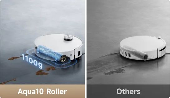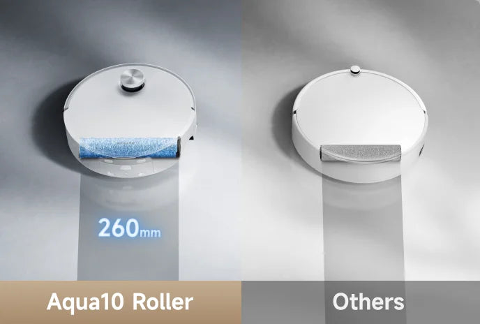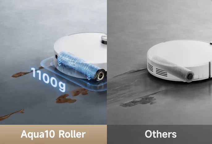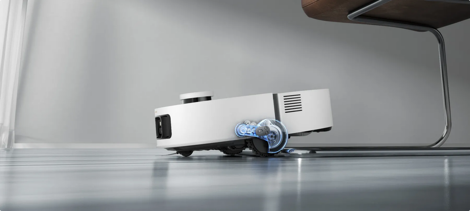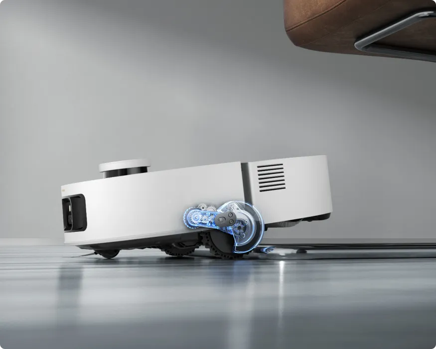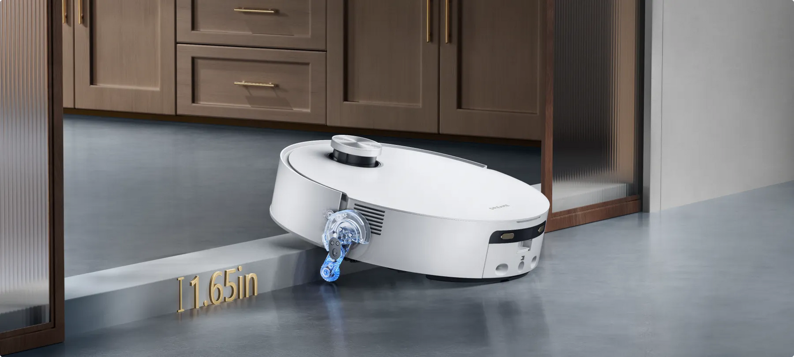 Aqua10 Roller's ProLeap™ system allows the robot vacuum to effortlessly clear thresholds, door tracks, U-shaped furniture, and steps up to 2.36in*.
