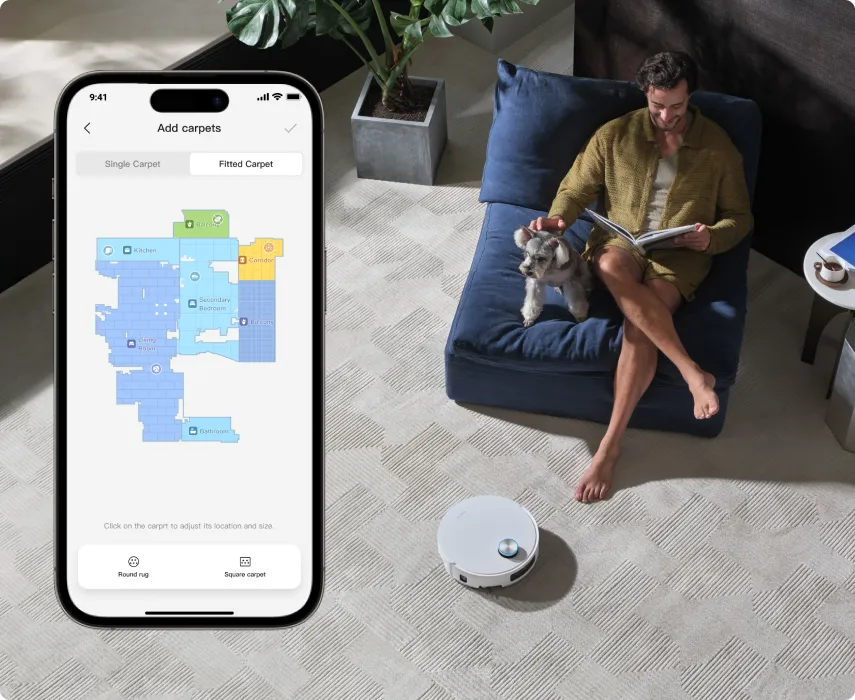 *Carpet Boost: This mode is available in the cleaning app. Once the carpet is detected, the robot vacuum will clean with maximum suction power. Not available under Quiet Suction Mode.