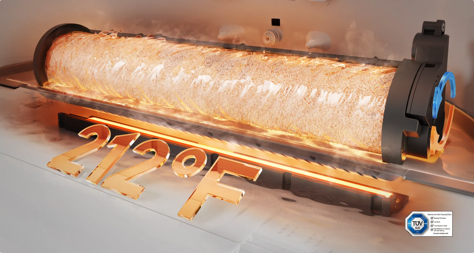 *100℃: Temperatures above the washboard's PTC system can reach 100℃ after heating under ambient room temperature conditions (around 23℃), based on our in-house lab data. Actual temperature may vary.