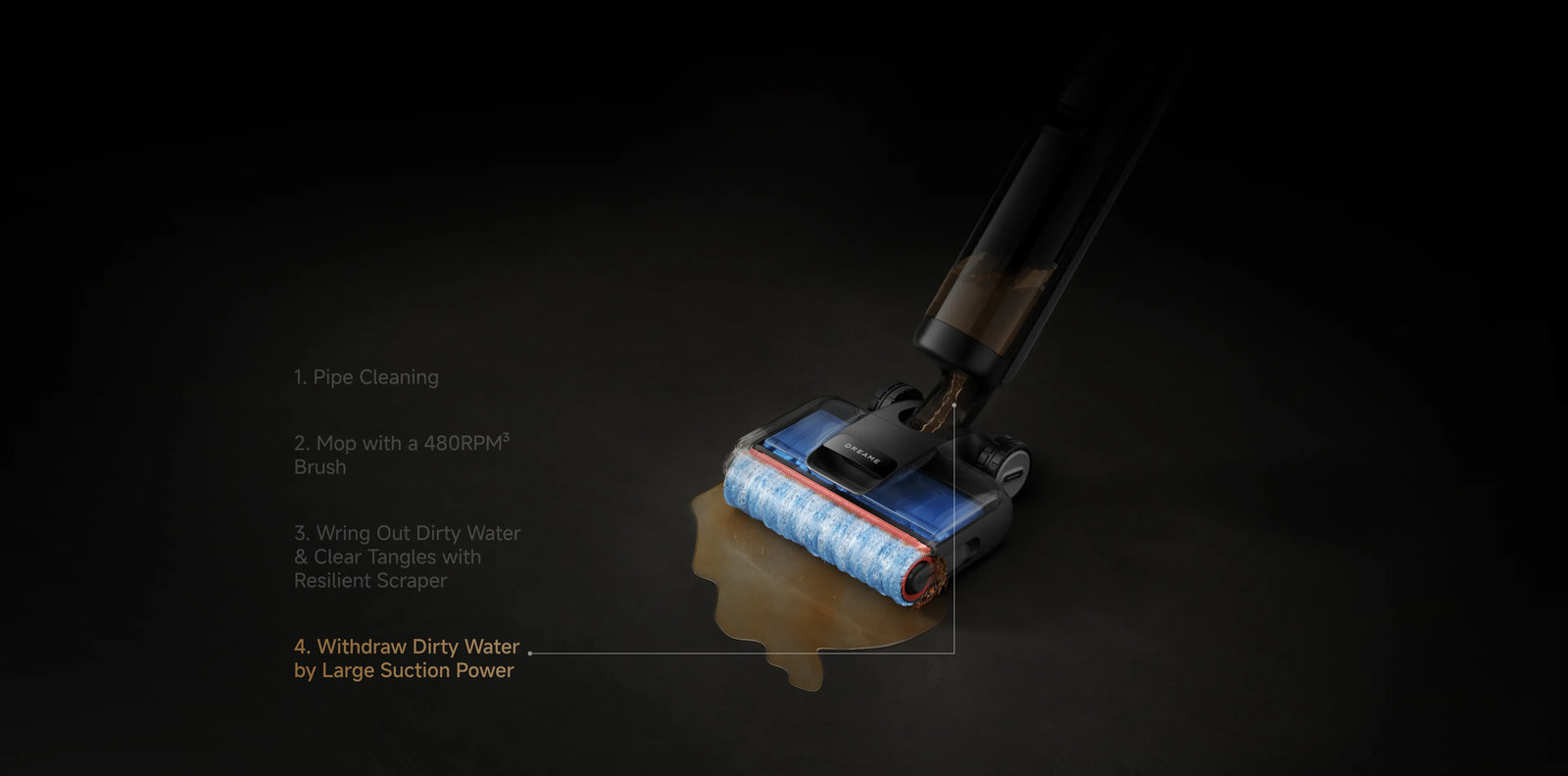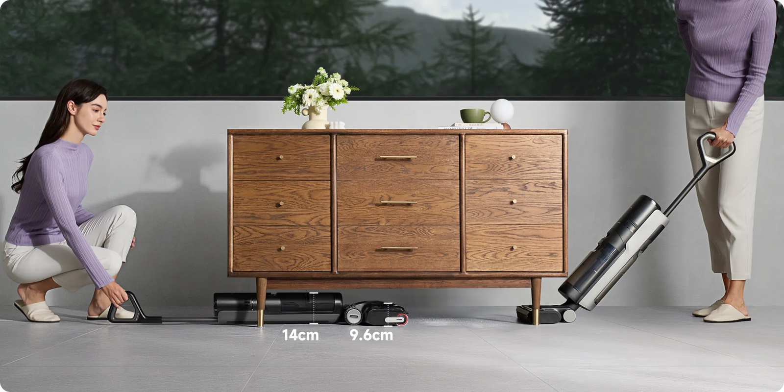 *0.2g water streaks: H12 Pro FlexReach leaves less than 0.2g of watermarks after 4 rounds of mopping a 60cm wooden floor at a speed of 20cm/s, based on our in-house lab testing data. Actual results may vary based on floor type, usage, and environmental conditions