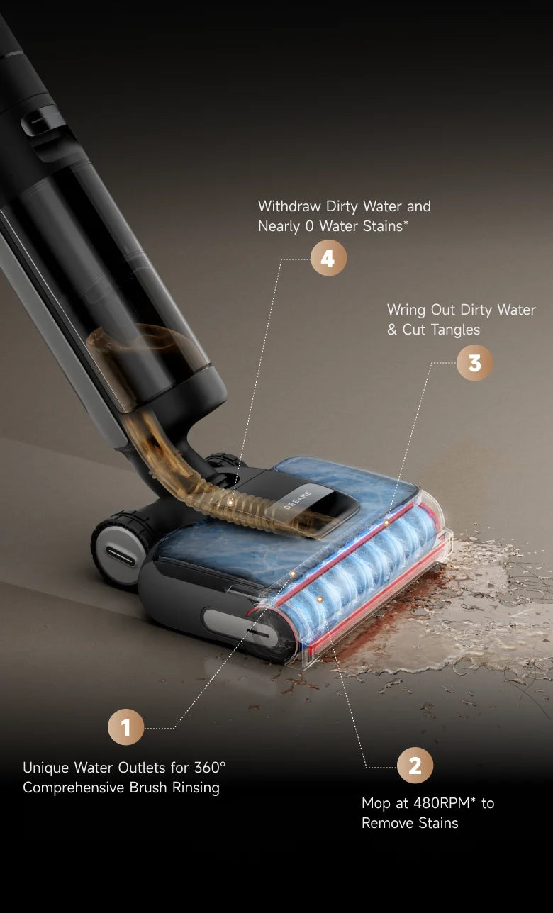 *Nearly 0 water stains: In one push-and-pull round, the average residual water stains are around 0.005g, based on TÜV Rheinland. Report No.: CN25ZY2W 001.