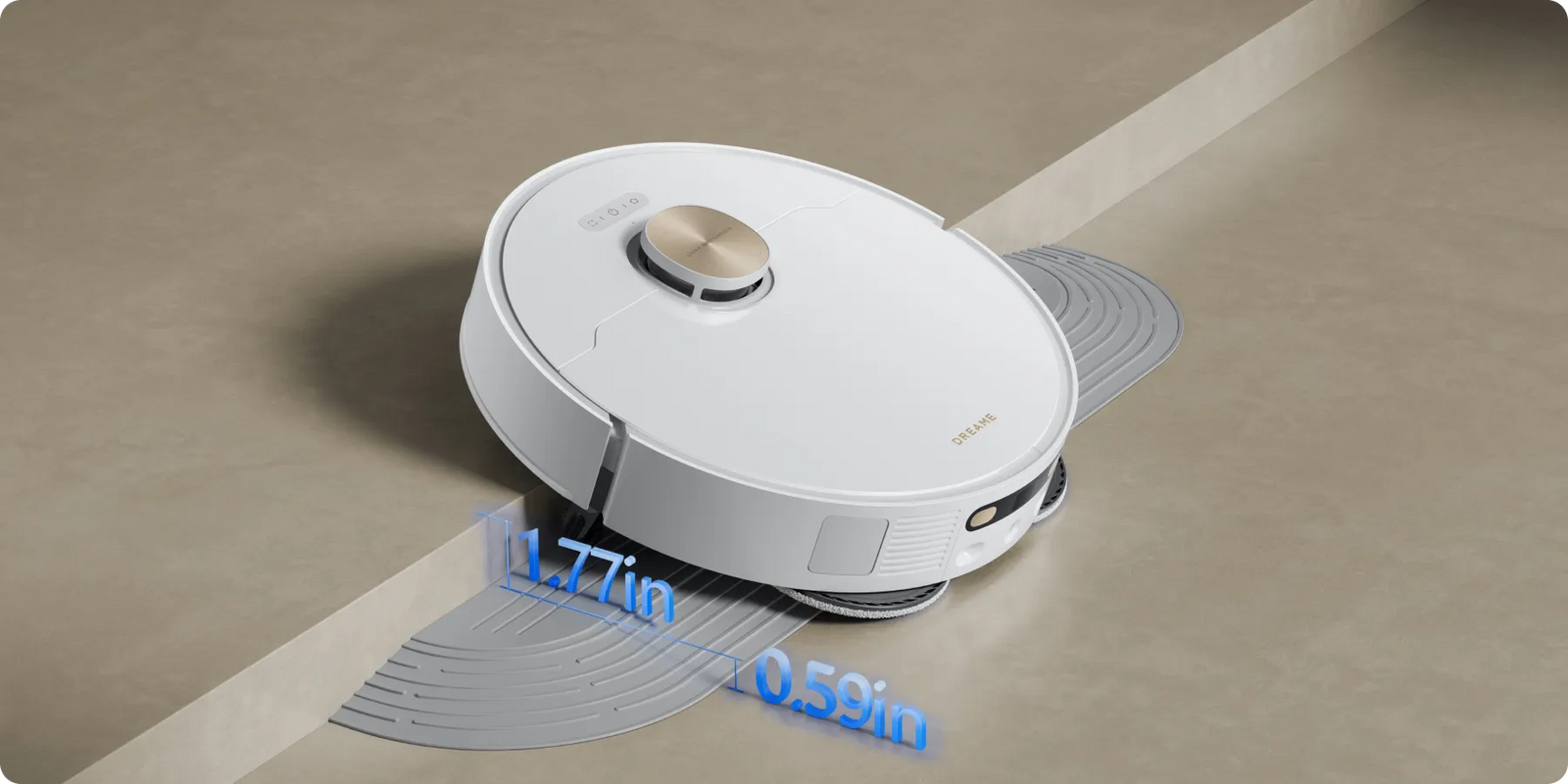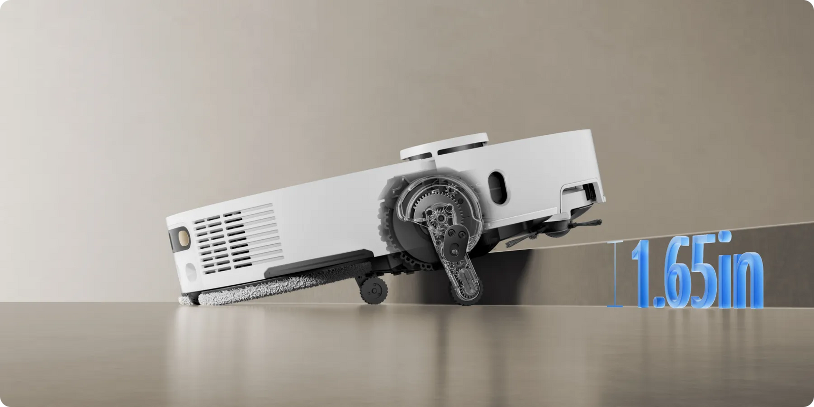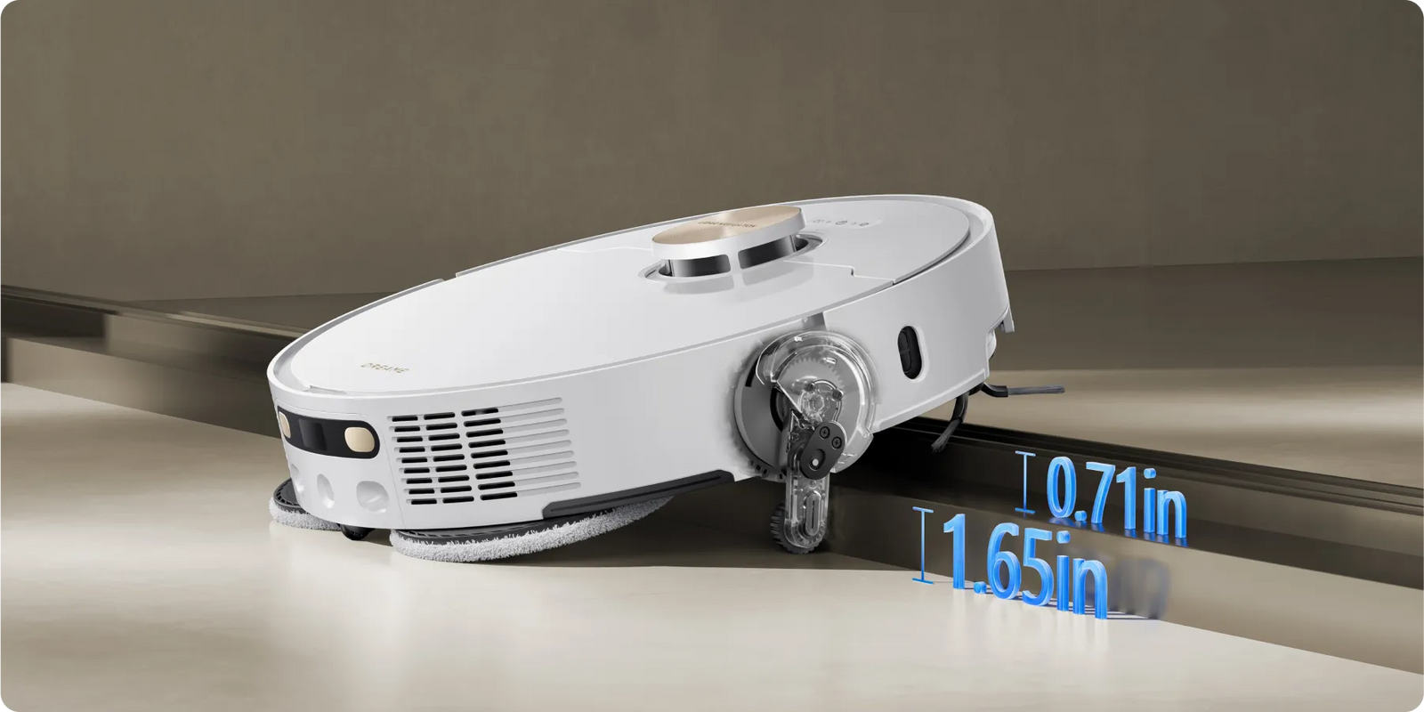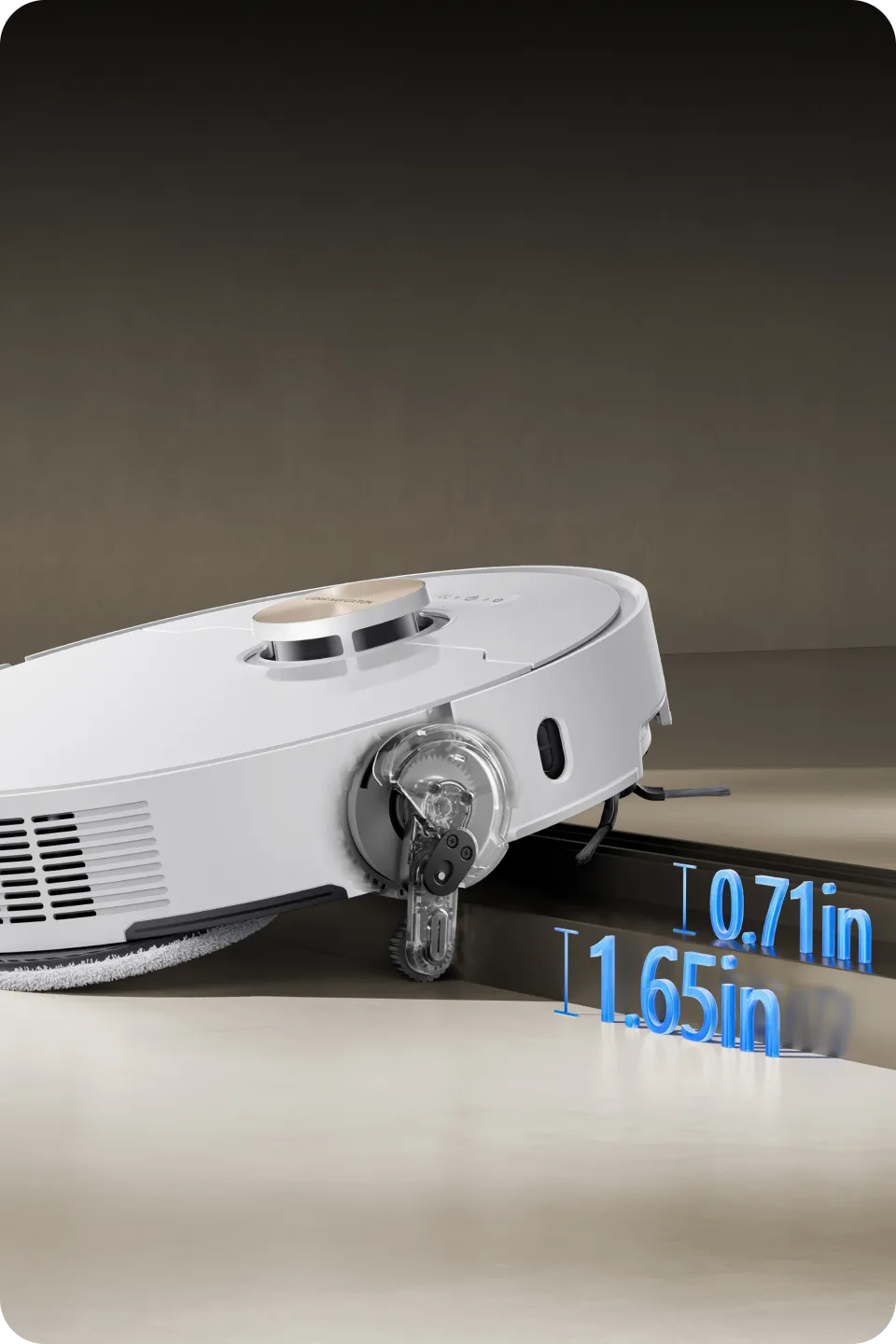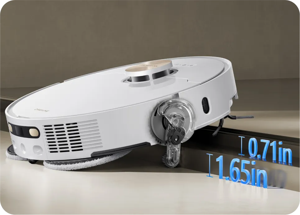*0.413in: Based on tests in our in-house lab. The height difference of the robot vacuum is 0.413in before and after mop lifting.