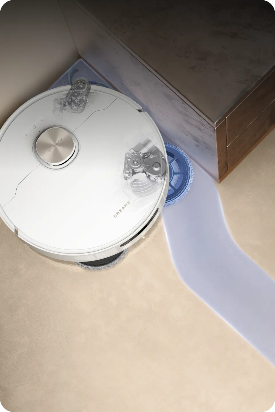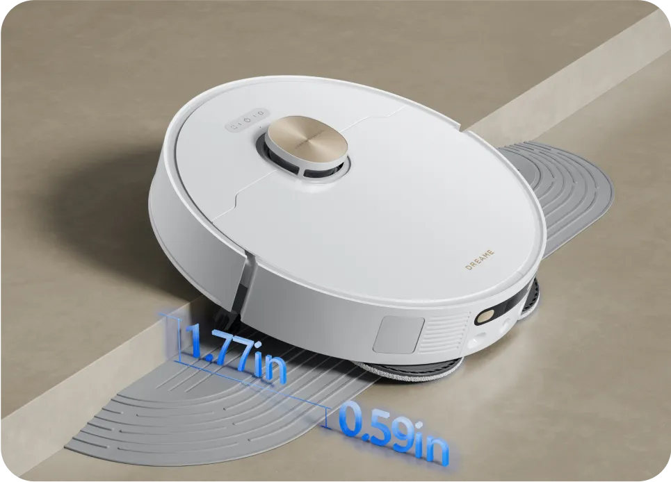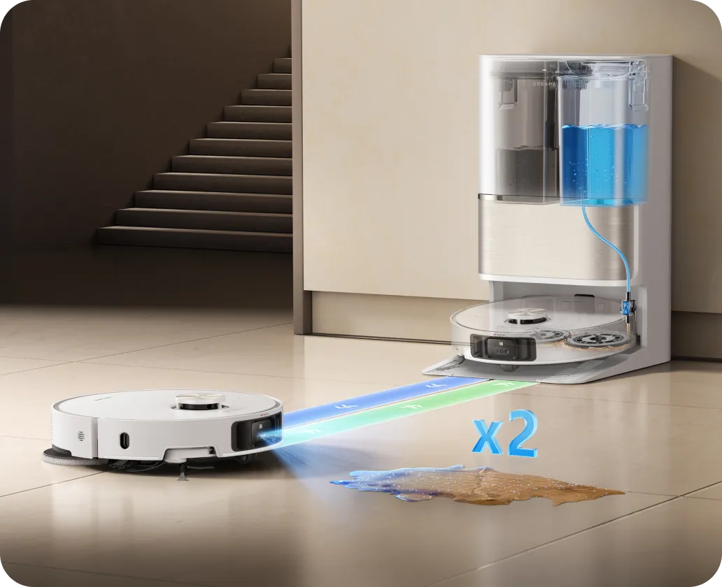 Experience spotless and dry short-pile carpets in the living room with an intuitive mop lifting to 0.413in*. Customize a cleanup in the Dreamehome App by opting for a suction boost* or intensive cleaning* to vacuum twice at a slower speed, ensuring a deeper, more effective carpet clean.