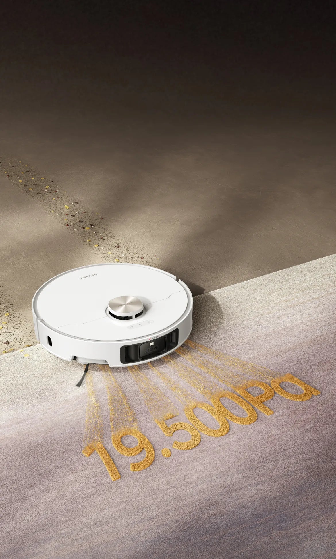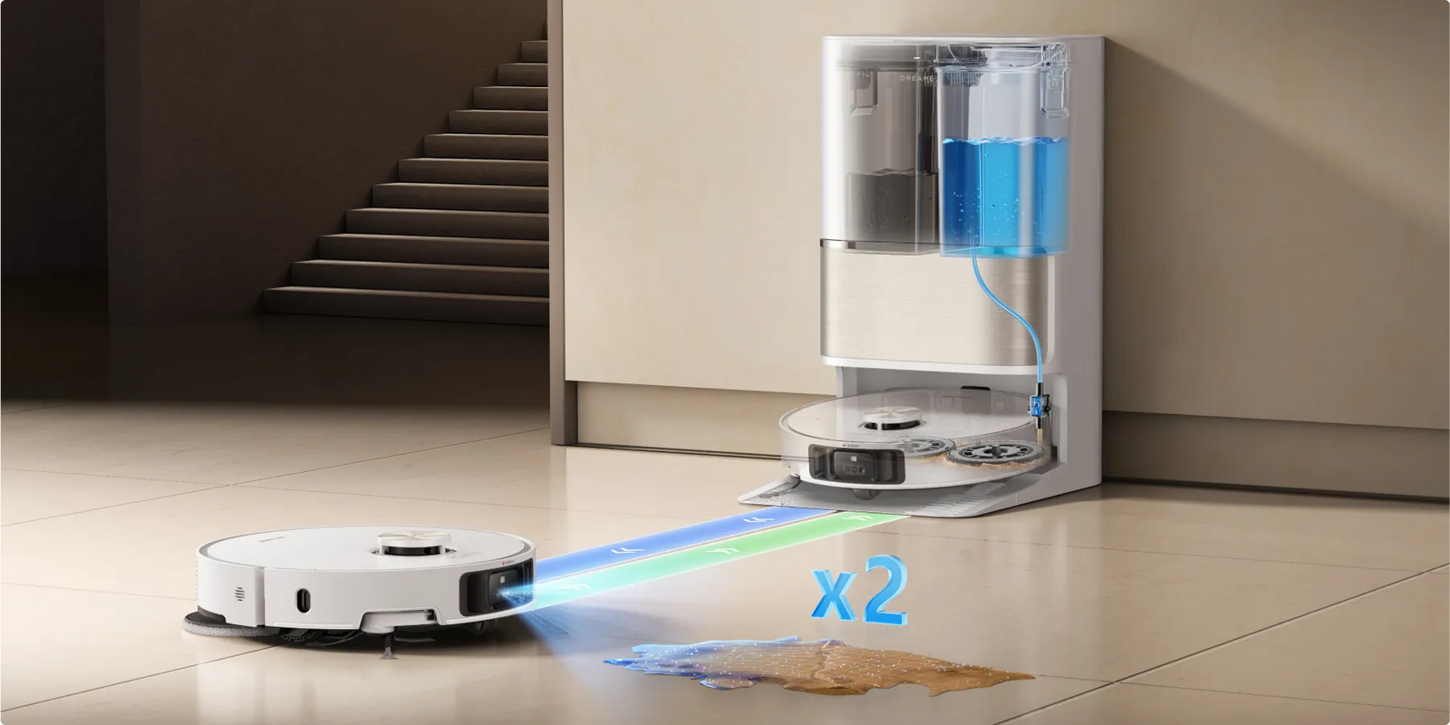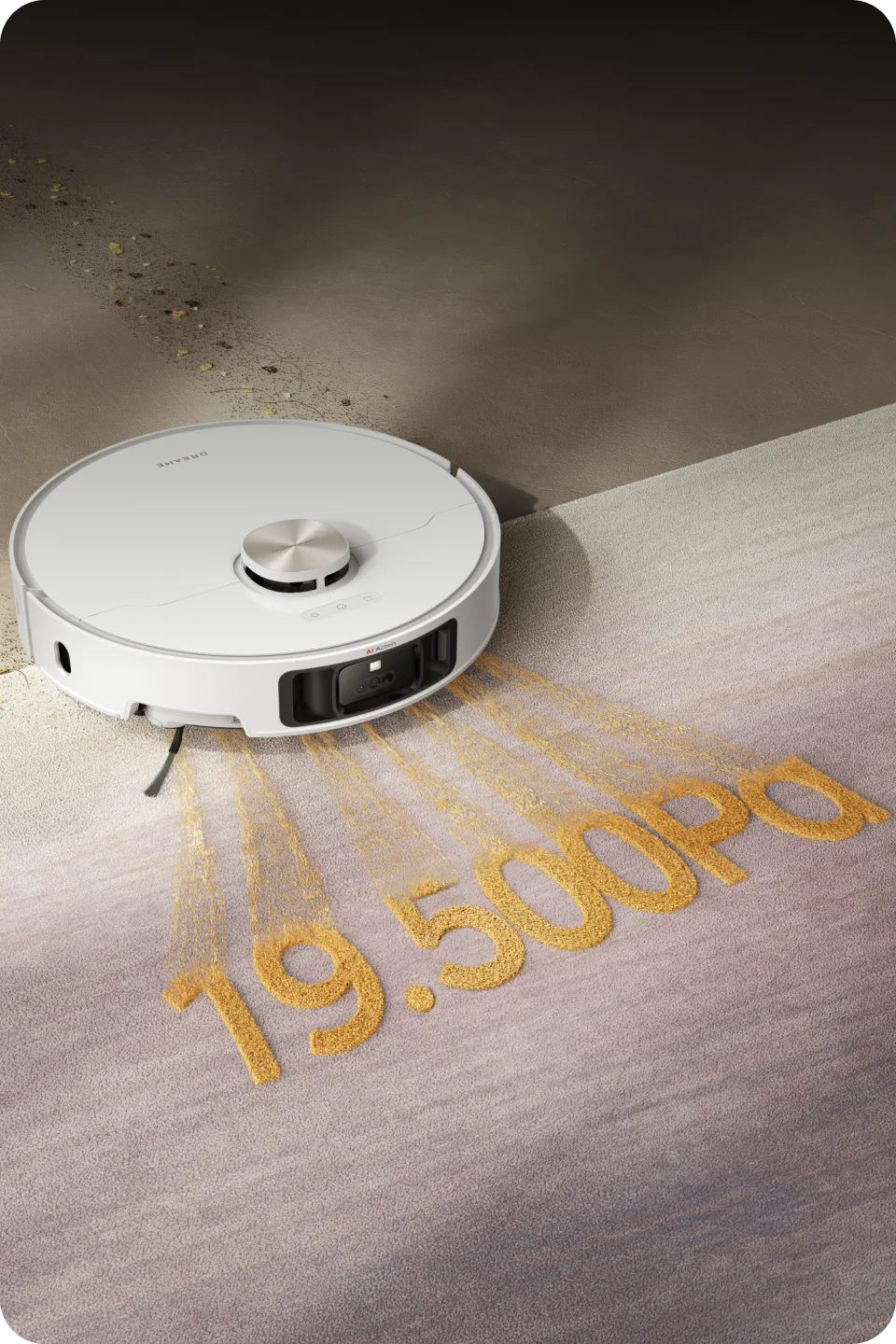 Experience spotless and dry short-pile carpets in the living room with an intuitive mop lifting to 0.413in*. Customize a cleanup in the Dreamehome App by opting for a suction boost* or intensive cleaning* to vacuum twice at a slower speed, ensuring a deeper, more effective carpet clean.