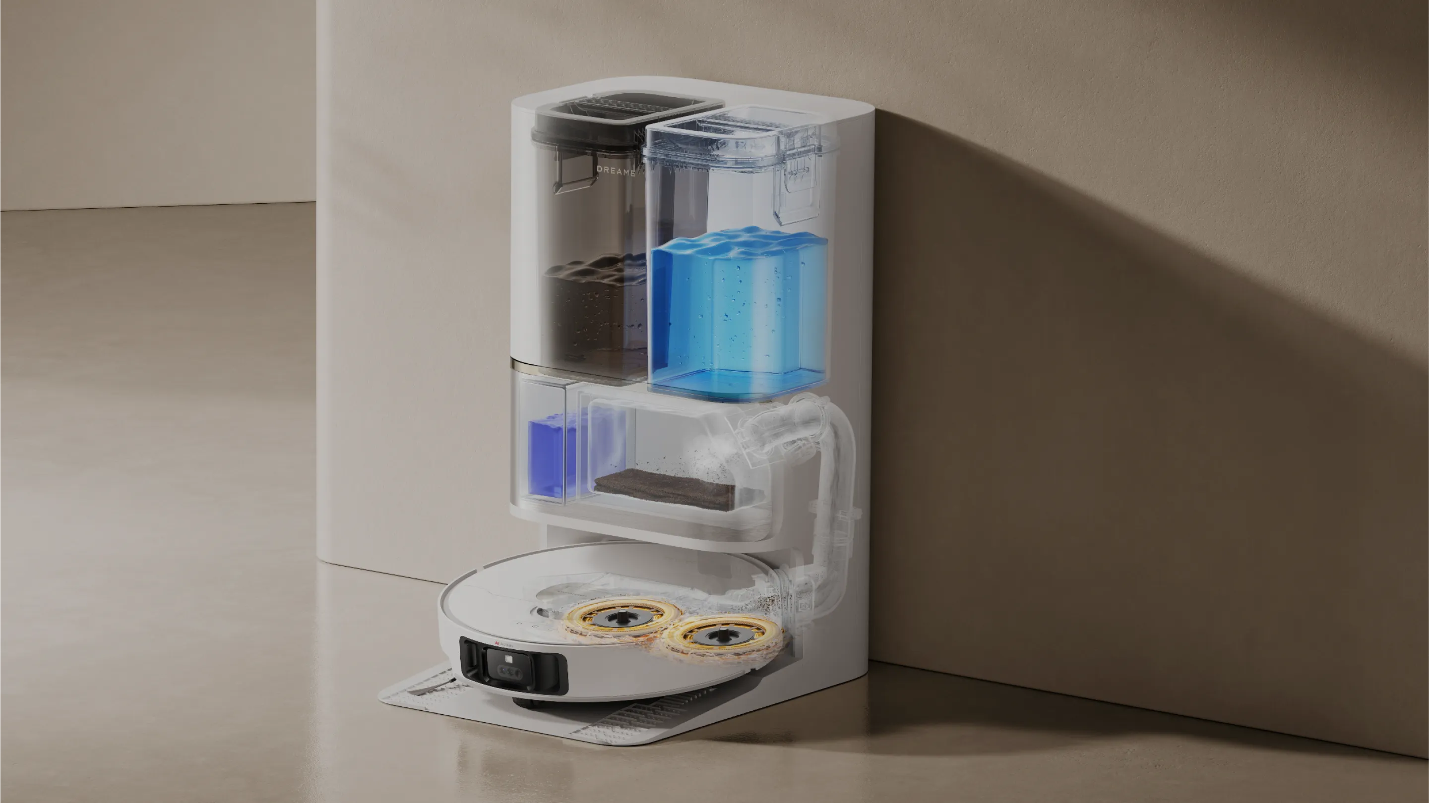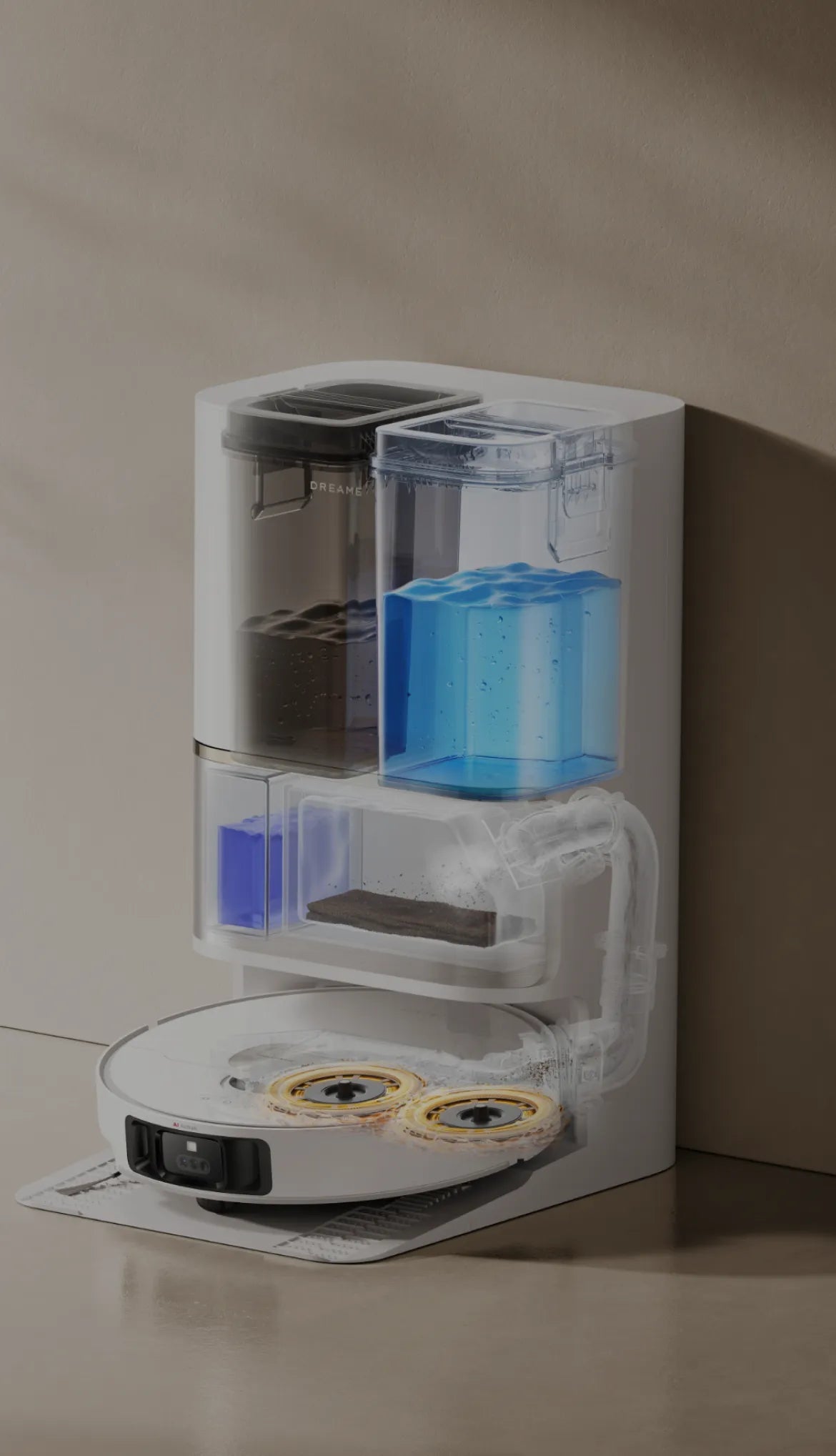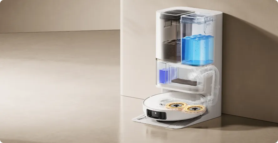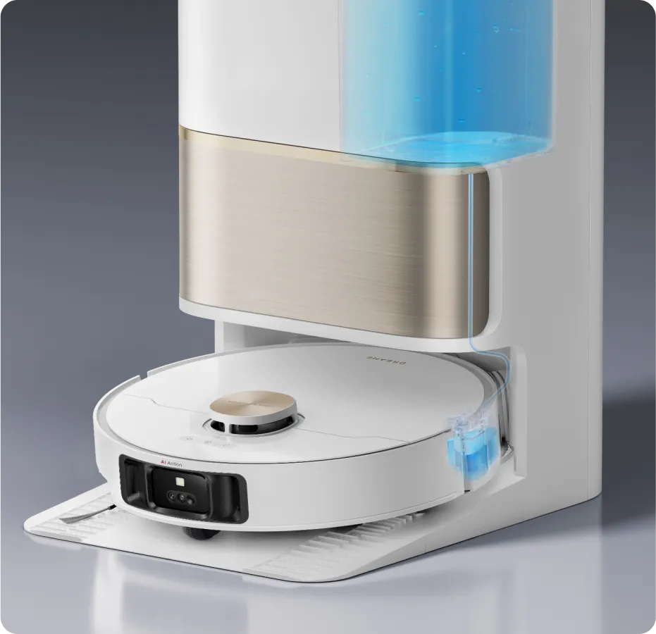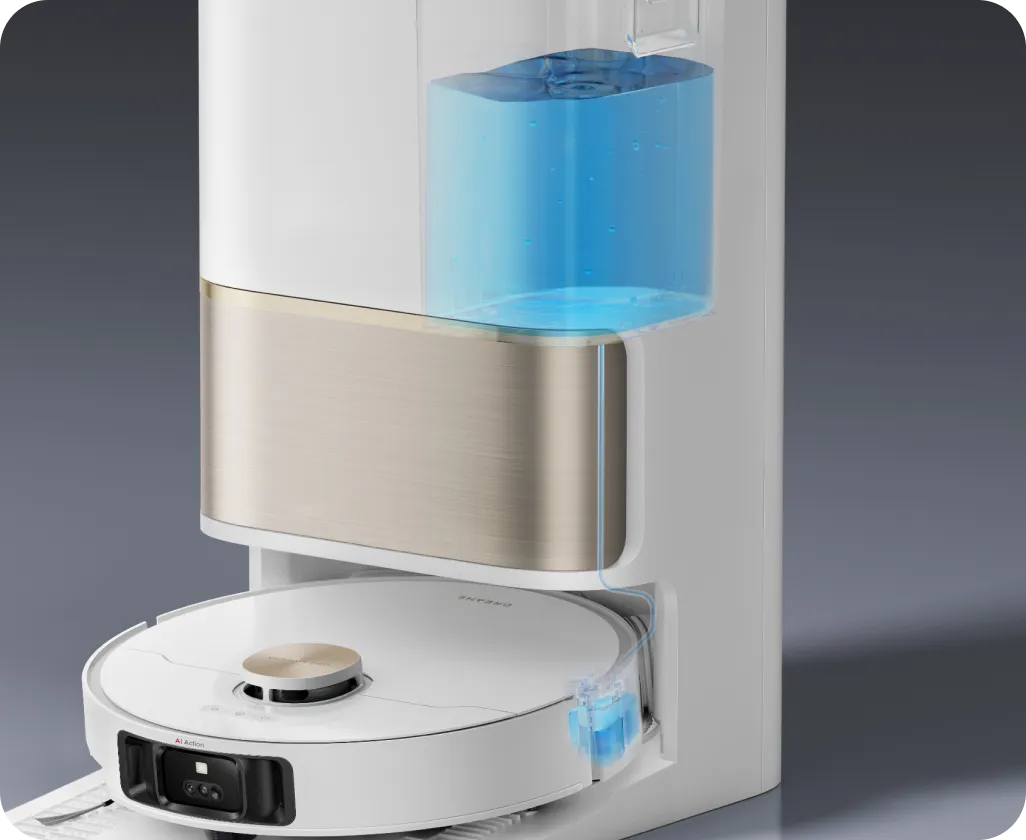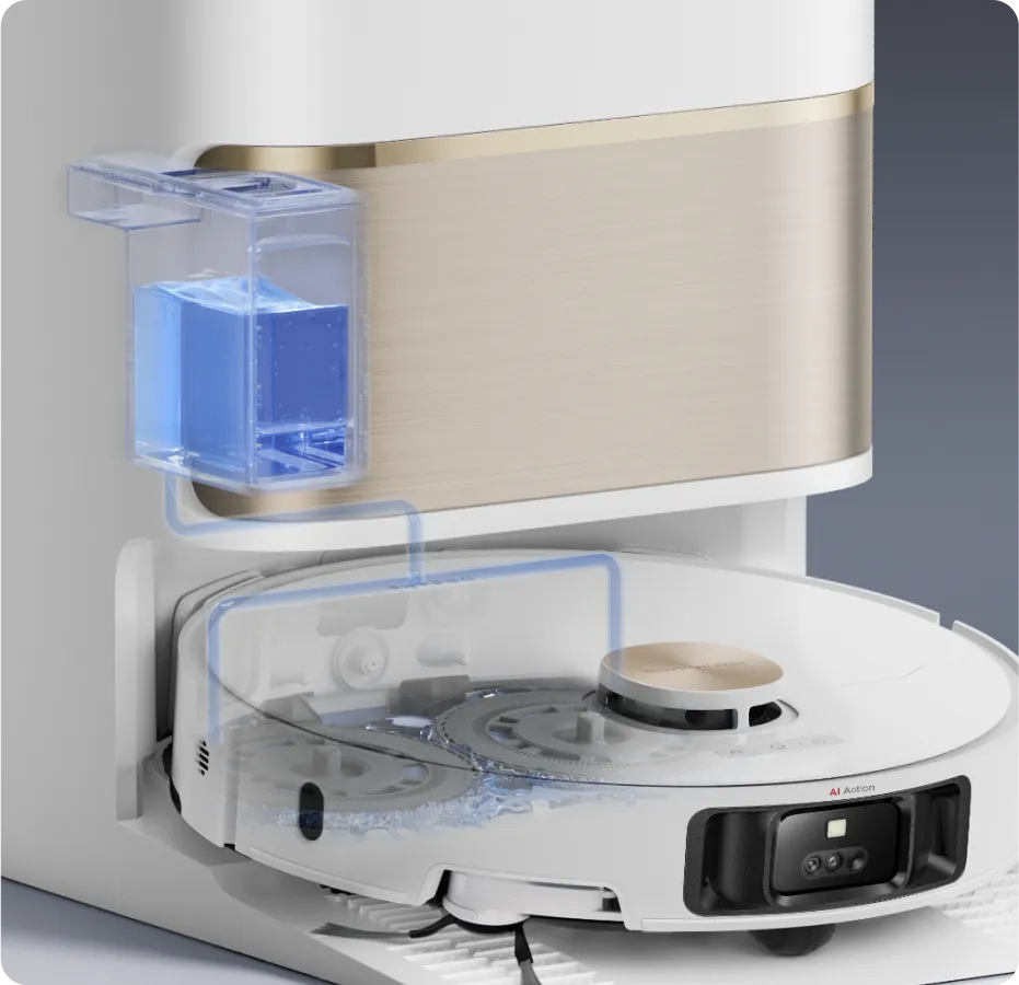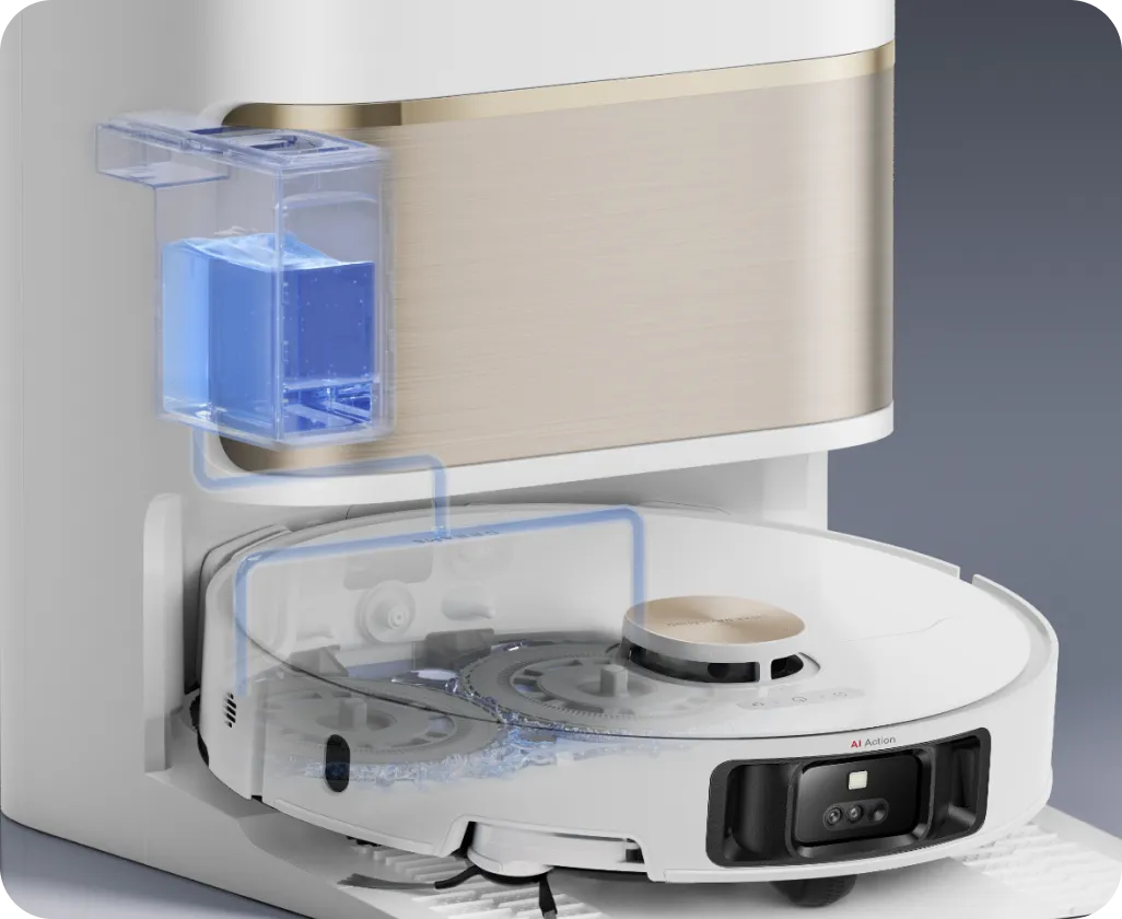 Using a color sensor, L50 Ultra assesses the dirty water after mopping. If it's too murky, the robot vacuum will adjust the water volume within 32 levels to deep clean its mop pads. After that, L50 Ultra is ready to scrub your floors twice for their pristine finish.