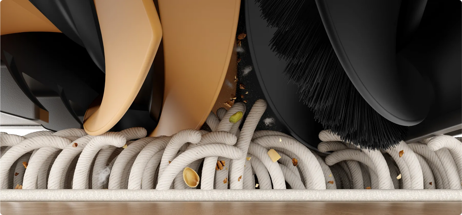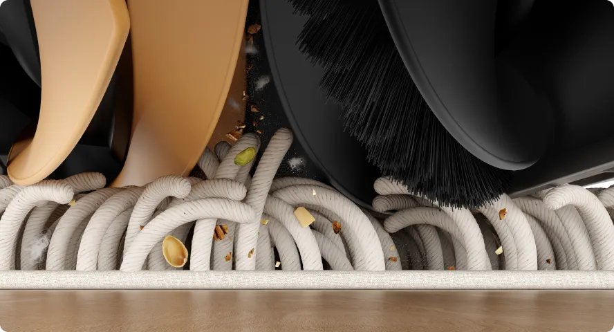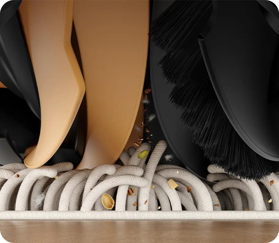 Embrace improved vacuuming capabilities with the TripleUp Tech. L50 Ultra lifts its mop pads to 0.413in* while lowering the side and main brushes, efficiently removing pet hair, dust, bread crumbs, and more from multiple surfaces.