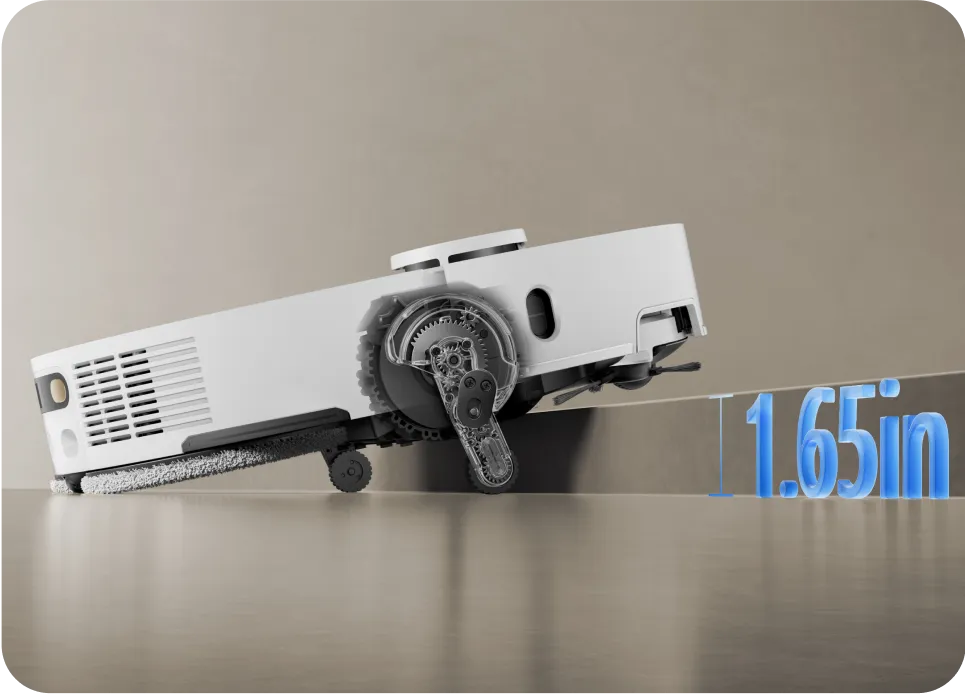 High barriers are no longer a challenge. L50 Ultra navigates around your home, effortlessly conquering steps, high thresholds, and door tracks, ensuring a thorough clean in hardly accessible areas. This robust vac-mop hybrid tackles high obstacles smoothly, solving the most challenging cleaning tasks.