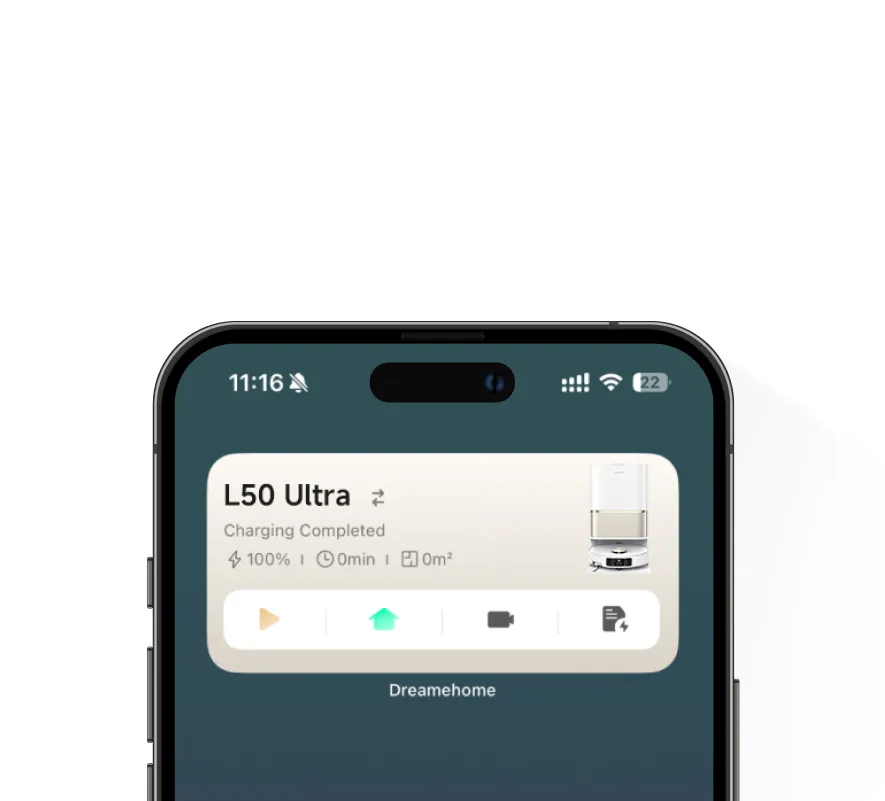 L50 Ultra's 6,400mAh battery provides up to 200 minutes* of cleaning in Quiet Mode, covering up to 2002.09ft²* on a single charge. When the battery runs low, it returns to the dock to recharge and resumes cleaning from where it stopped.