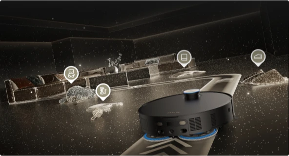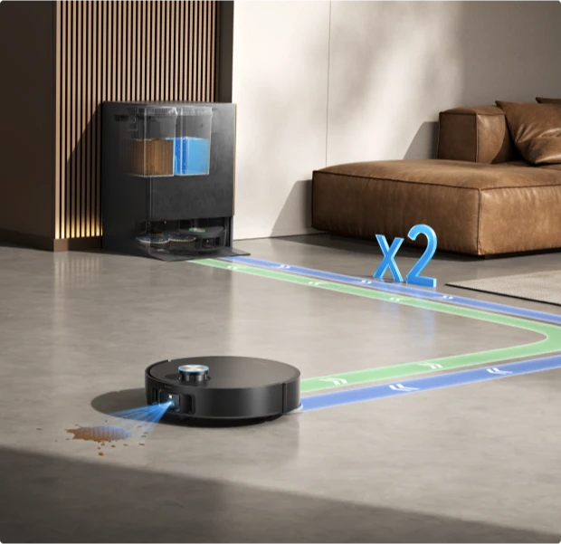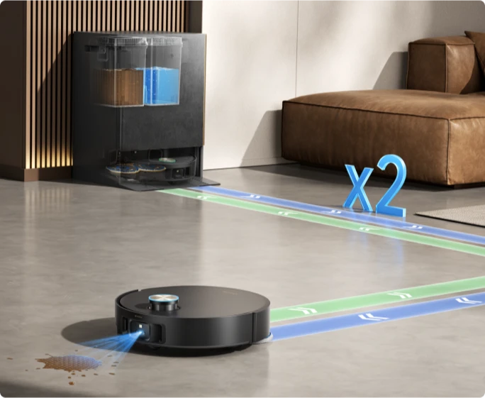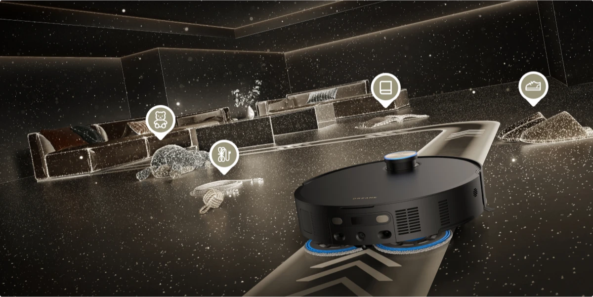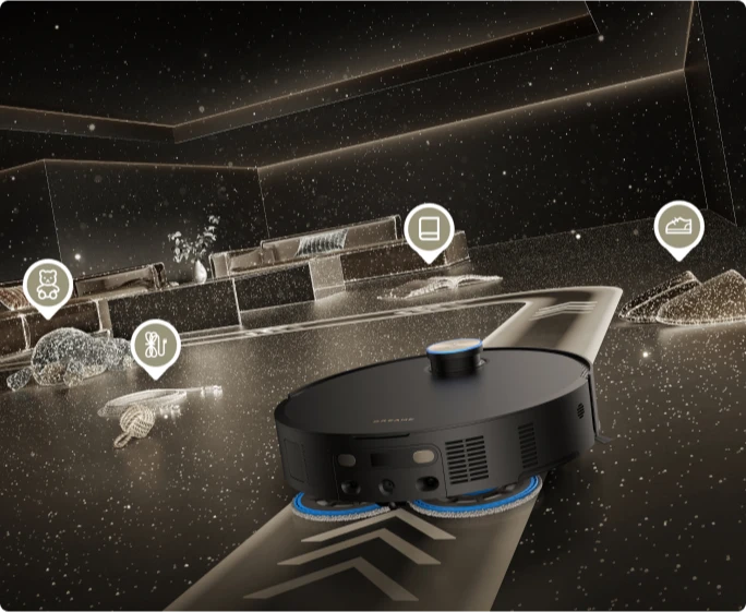 With 3D structured light and AI action, Matrix10 Ultra swiftly detects 240+* types of objects. This technology generate a detailed 3D map to detect and avoid smaller items like wiring and socks while safely navigating closer to larger obstacles such as shoes and charging bases.