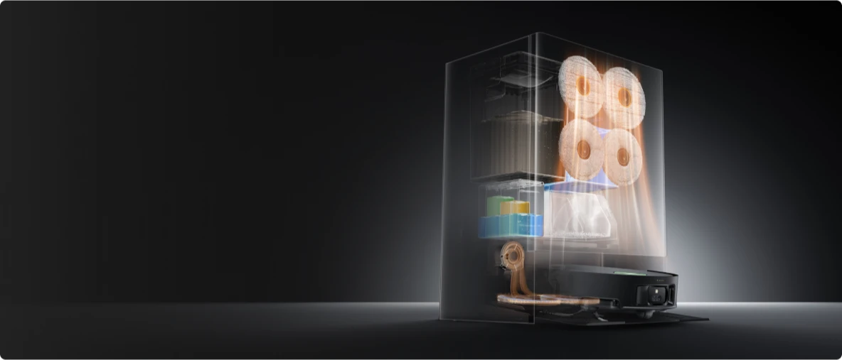 *DashDry™ System: After cleaning, it will first dry the mops and then dry the dust bag and dust box.