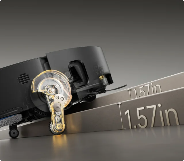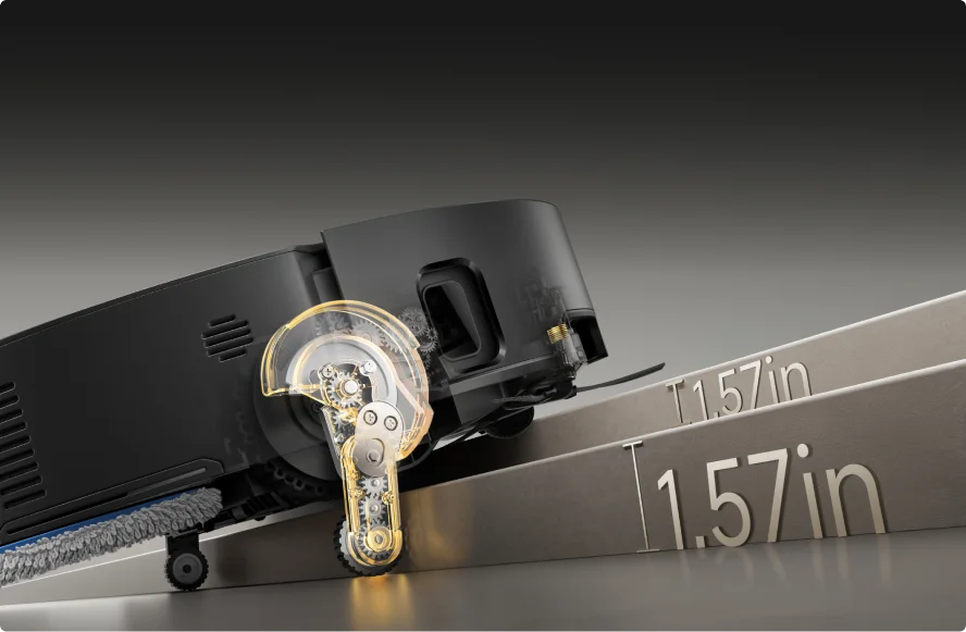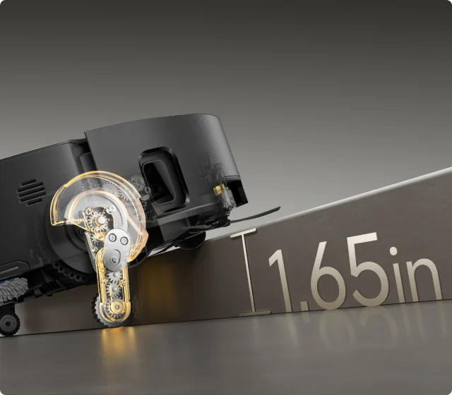 *3.15in, 1.57in: Refers to the double-layer step's height where the top surface of the lower step is over 4.72in wide, when the robot vacuum uses its retractable legs in Hurdle-Style Mode. For a single-layer step, the highest height is 1.65in. Based on our in-house lab data. Actual performance may vary.
