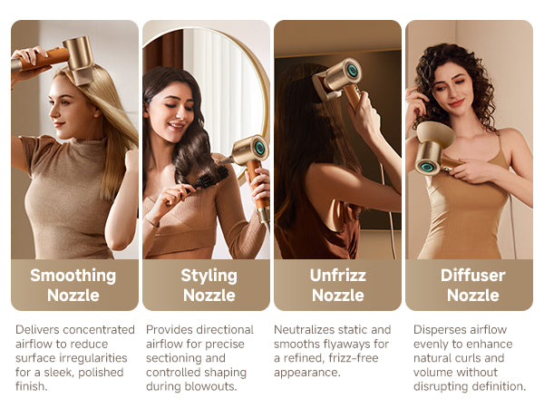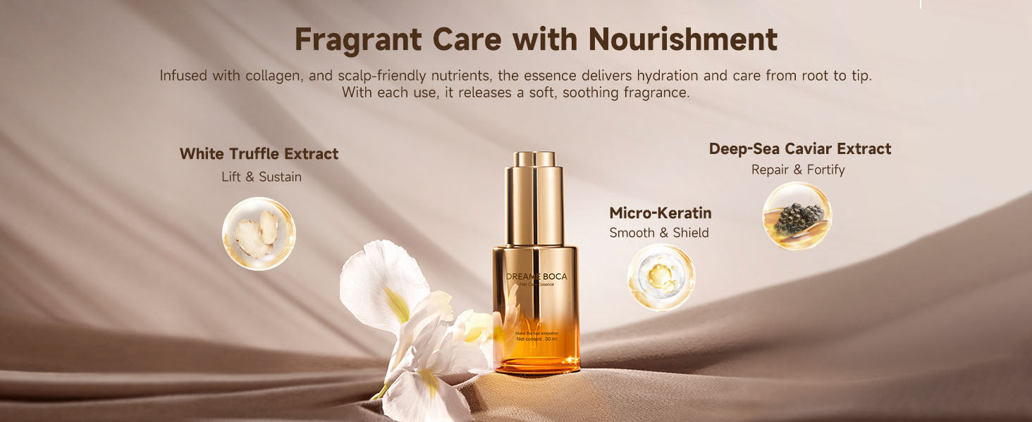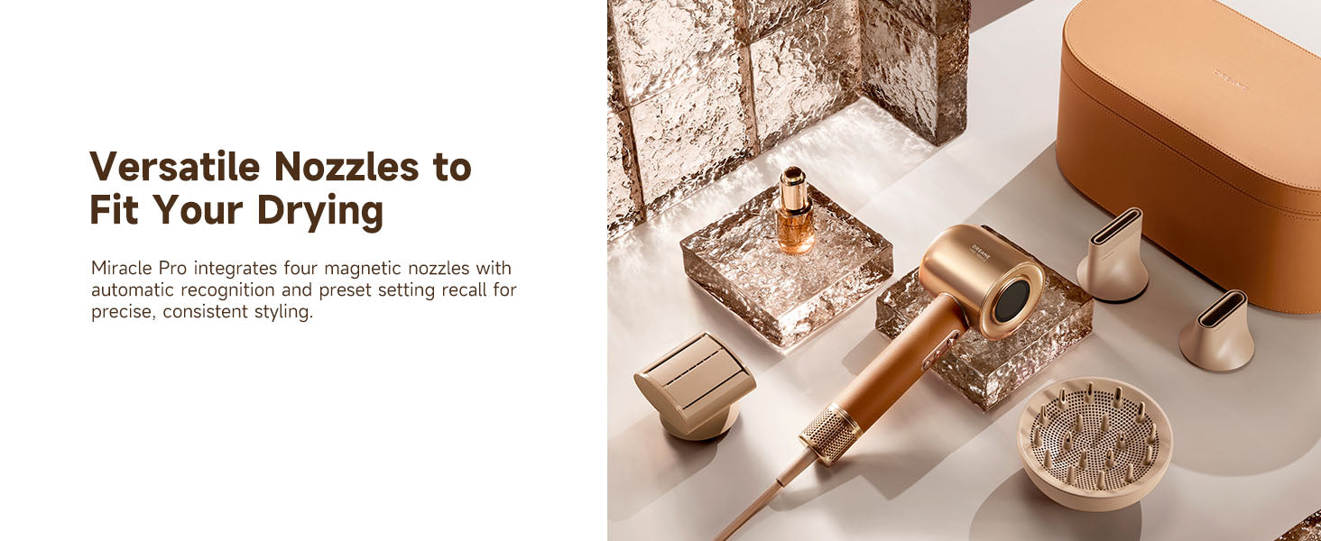 Free nourishing essential oil and 4 nozzle attachments included in the package