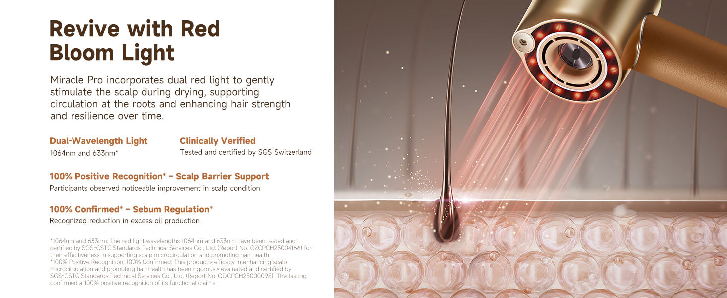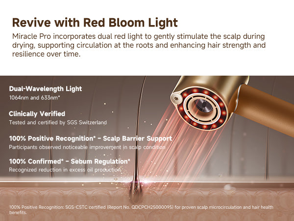 Dual red light stimulation boosts scalp circulation for stronger, more resilient hair