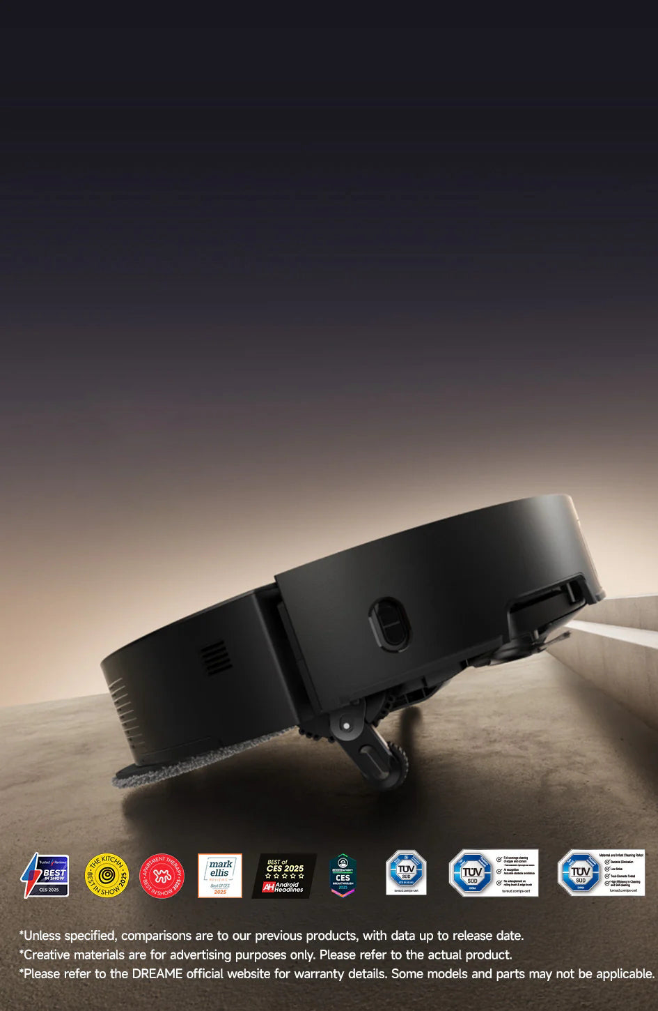 *The highest in the industry: Dreame was the first in the robot vacuum industry to mass-produce a product featuring ProLeap System with Retractable Legs control, officially launching this technology in Q4 2024.